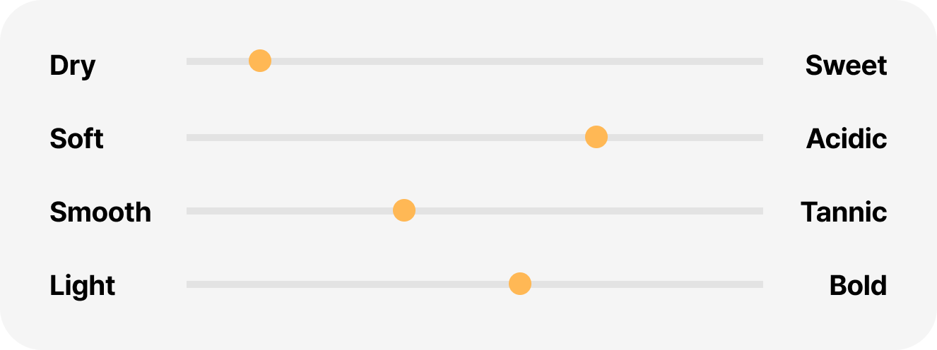 상큼한 감귤류와 밝은 청사과의 아로마가 느껴집니다. 잘 익은 배의 풍미가 상쾌한 산도가 깔끔한 피니시와 함께 조화를 이룹니다.